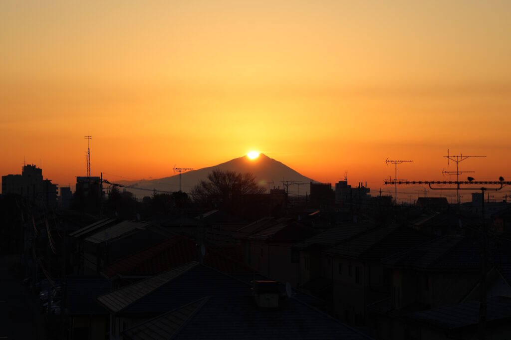 川木谷陸橋からみえる筑波山のてっぺんからの日の出は