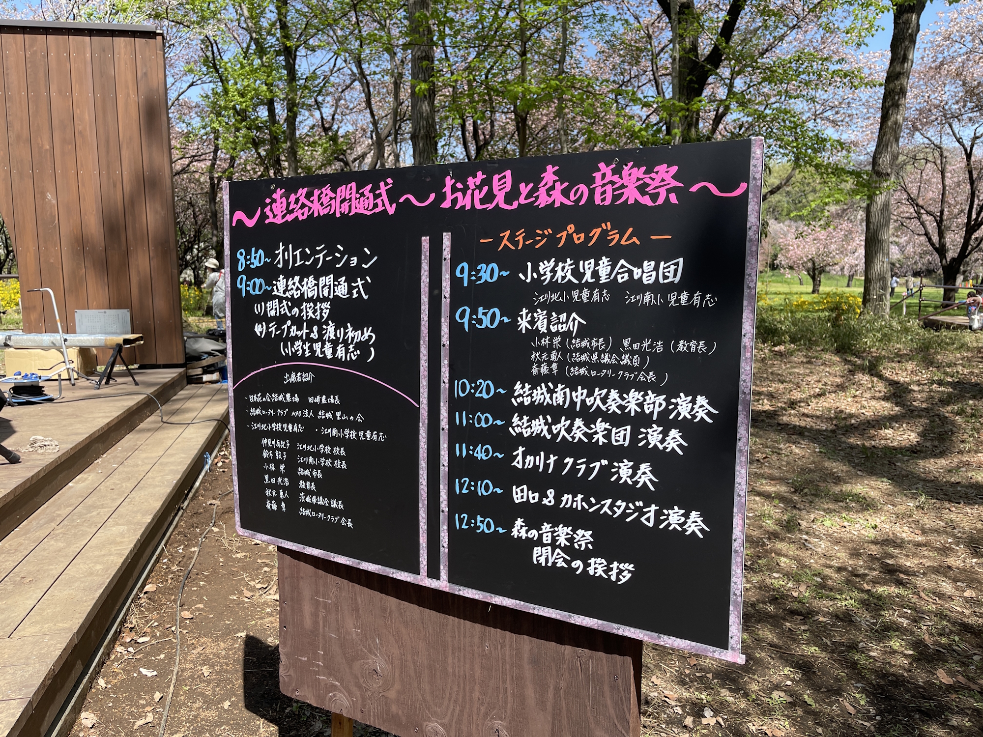 お花見会・音楽会・日本花の会さんとの連絡橋開通式に参加。