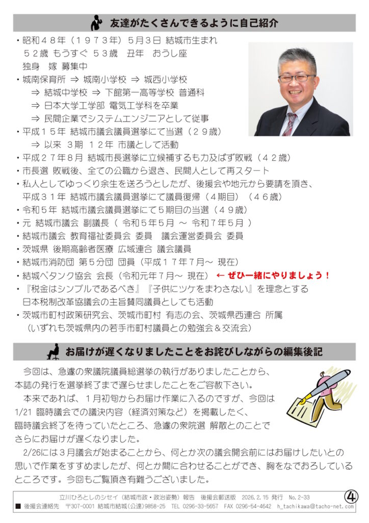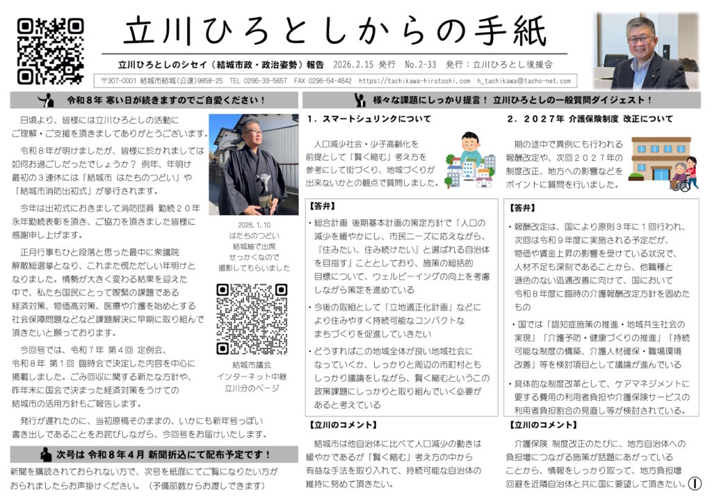 立川ひろとしのシセイ報告 2-33号  2026/02/15 発行